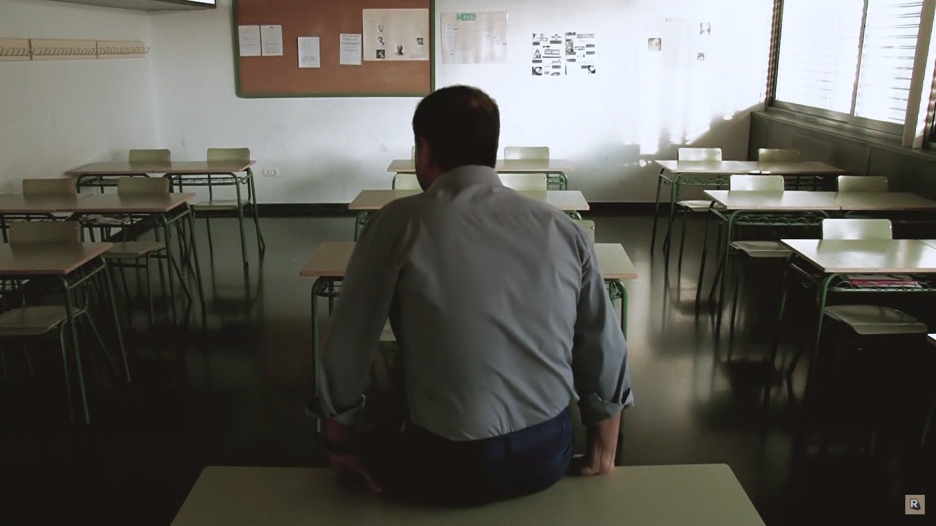 In this way we wanted to recreate in 45 seconds a speech from the heart of an apparent high school teacher to his students in which transcendental historical events in Spain are brought together. At the end of this speech the classroom appears completely empty, symbolically showing the disinterest and passivity and lack of motivation we were talking about, symbolized by the absent students.